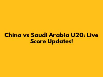 China Vs Saudi Arabia U20: Live Score Updates!